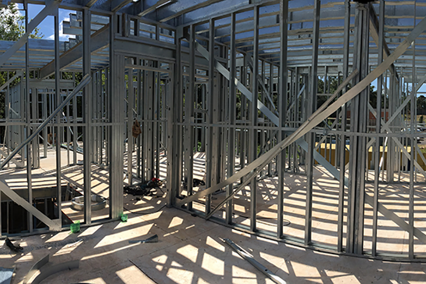 A estrutura é composta por perfis leves de aço que em conjunto com as placas estruturais LP OSB Home Plus formam painéis estruturais (diafragma) capazes de resistir às cargas verticais (telhados e pavimentos), perpendiculares (ventos) e de corte transmitir as cargas até a fundação.
